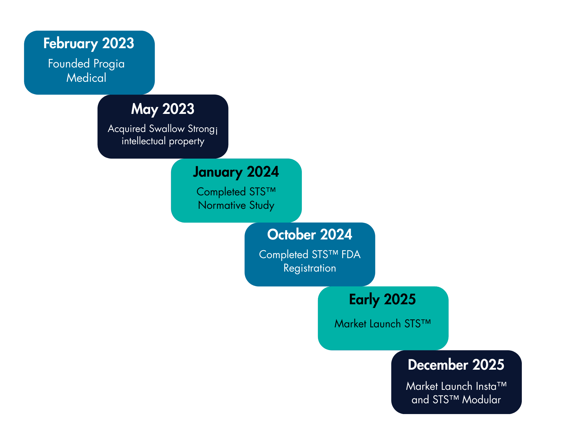 Progia Medical is dedicated to helping individuals suffering from dysphagia by following our vision to create a culture that puts patients first. We believe in prioritizing our core values of safety, quality, efficacy and care with our team members and customers. Through these efforts we can accomplish our goal.